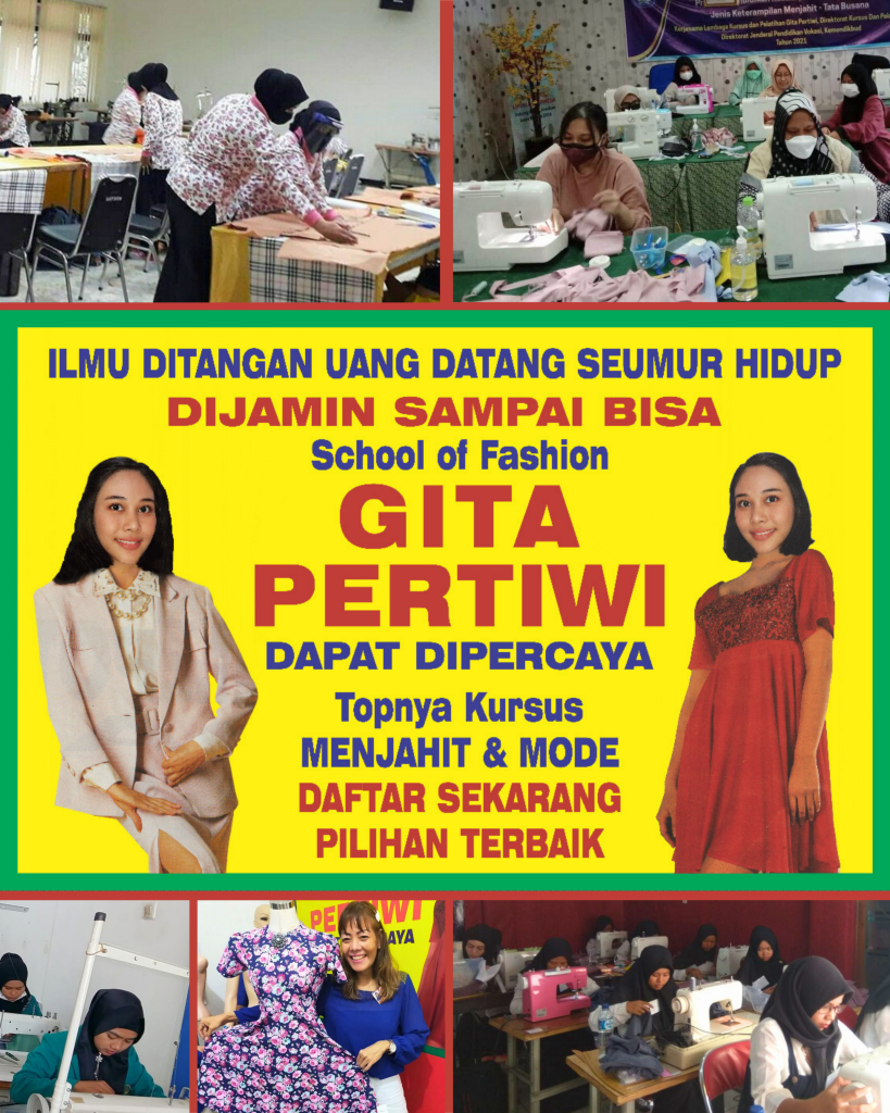 School of Fashion Gita Pertiwi merupakan pilihan terbaik dalam belajar menjahit dan mode bagi siapa pun yang ingin menguasai keterampilan, membangun karir di dunia fashion, atau, membuka bisnis, atau menambah penghasilan mandiri.